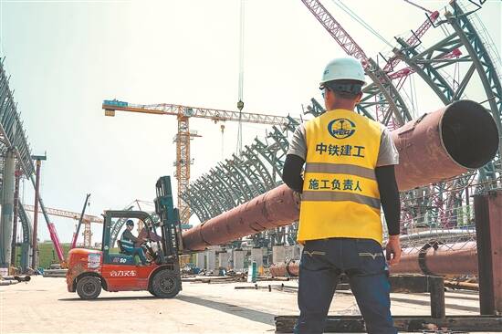 广州白云站站楼施工现场,叉车司机就是平台作业中灵活的“大手”,将重型组件精准、快速地转运 |
