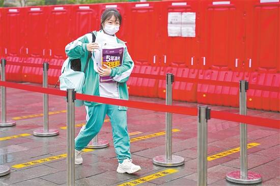 文/羊城晚报记者 蒋隽 图/羊城晚报记者 梁喻 18日,广州高三学生返校复课(白云区除外),对于不能返校居家学习的学生,学校采用线上方式同步推送教学内容。记者走访多所学校了解到,各校严格执行相关防疫要求,在守好学校安全门的同时,将调整高三备考复习节奏,做好后期应急预案。 复课首日凭48小时核酸证明入校 早上7时左右,在广州市第一一三中学校门口,同学们正间隔一米排队递交“家校两点一线”承诺书,凭穗康码绿码、本人及同居住家属48小时核酸检测阴性证明返校。 记者了解到,广州市第一一三中学现有高三学生401人,教职员工含干部教师、校医、心理老师、宿舍管理员、网络管理、清洁工、保安和食堂后勤人员等共计83人。因学校条件有限,高中部只有200多个宿位,不具备安排全部师生住宿的条件。为尽快恢复线下教学,学校设计了四套应急预案:一是改造课室建宿舍,大量增加宿位和相应设施设备,以满足全体高三师生校内封闭管理的需要;二是与高校合作,租用高校培训部进行封闭教学管理;三是利用现有宿舍加学校旁边宾馆(协商封闭管理)解决师生住宿问题;四是线上+线下教学形式相结合。 4月16日,经高三年级级长、班主任广泛摸查学生和家长意向后,广州市第一一三中学最终决定采取“大部分师生校内封闭+部分师生家校两点一线承诺管理+个别学生线上学习”的复课形式,有序组织高三学生返校复课。 据了解,海珠区有十所区属高中,四所有住宿条件学校的高三学生一直在全封闭备考,另六所无住宿条件的高中于4月18日全部恢复高三线下课程。复课学校严格守好学校的安全门,要求全校师生凭48小时核酸阴性证明、健康码、行程码进校园,返校时还必须提供家属48小时核酸阴性证明。返校后,学校将精准把握学生及家长的健康状况,实行全体师生、行政人员、第三方服务人员核酸一天一检测。 多所学校调整备考复习节奏 广州市岭南画派纪念中学负责人介绍,该校高三学生有200多人,恢复线下教学后,学校有序做好后勤、防疫、教学常规管理等工作,并通过线上平台为15名居家学习的学生同步推送教学内容,保证一个学生也不少。同时,该中学推出“三微”策略——微习惯、微技巧、微能力,清晰指引学生返校后的学习安排,做好学生线下学习、家长协助备考的心理辅导工作。 广州市第四十一中学负责人介绍,全校有高三学生359人,学生返校后,首先将对线上教育期间的教学效果进行评估,进而有针对性地进行补缺。其次,将加强学生心理焦虑的安抚工作,安排班主任、科任老师与学生们进行一对一谈心,并通过线上家长会、学校公众号推送相关文章等方式做好政策宣传、知识传播和心理安抚工作。另外,该中学还将在周一升旗仪式(分班、线上)和每周的心理健康教育课上,由专职心理健康教育老师进行心理疏导。学校心理咨询室也将正常开放,满足学生的心理辅导需求。 离高考还有一个多月,万一疫情反复,学校有何预案?广州市第四十一中学相关负责人表示,学校将继续加强“高效居家学习策略”的研究,从课程内容、课堂管理、心理调适等方面入手,应对较长时间的网课状况;适当调整教学进度,尤其是高三年级利用好返校机会切实落实好二轮复习的主要任务;继续做好纸质练习册的制作,尽量提供纸质版练习题,避免长时间网课对学生造成视力下降的影响;开展线上心理咨询服务,满足师生需求。