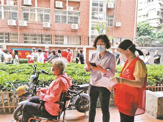 张倩昕(穿红马甲者)引导市民做核酸检测 受访者供图 |