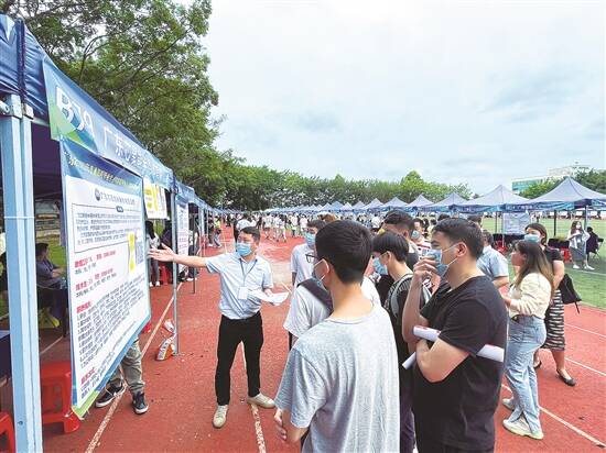 羊城晚报讯 记者陈亮、通讯员李帆报道:5月14日,广州应用科技学院广州校区的足球场人头攒动,大学生们手持简历浏览企业招聘信息,并与企业招聘人员面对面交流。当天,由广东省教育厅、广东省人力资源和社会保障厅主办,广州应用科技学院承办的“广东省2022届高校毕业生供需见面活动增城地区专场”活动举行。200家现场参会企业提供了涉及文化创意、人工智能、汽车制造等领域的5000多个岗位供毕业生选择,吸引近万名学生参加。据悉,这是今年截至目前,广东省教育厅在广州市线下举办的首场毕业生招聘会专场。 本次招聘会规格高、参会招聘企业多、参加招聘会学生积极,近700家企业提出了参会申请。根据省教育厅的筛选和学校专业设置要求,共有200家单位参加线下招聘,350家企业参加线上招聘。其中,工业和信息化部第五研究所、中国民生银行、广发银行、云南白药集团等多家知名企业参加了线下招聘会。 招聘会现场还设置了广东大学生志愿服务西部(山区)计划报名咨询点、大学生应征入伍报名咨询点,为广大毕业生提供服务答疑。 记者留意到,不少参会毕业生精心准备,提前做足功课,投递简历时不再是“海投”,而是综合对比后确定了意向单位。“今天来招聘的企业非常多,给了我们很多选择机会。”来自广州应用科技学院国际经济与贸易专业的张同学早早地来到现场,对企业招聘信息进行了解,他表示,“学校很重视毕业生就业情况,‘就业服务月’帮助我们提早了解就业相关政策、进行职业规划。” “广州应用科技学院的体育类专业在省内民办高校中是响当当的。”广州力华体育公司负责人表示,作为该校校友创办的地方企业,该企业在此次招聘会上推出众多工作岗位,拿出了具有竞争力的薪酬福利,希望能招聘到母校的毕业生留在增城工作。 在疫情防控常态化背景下,网络招聘会已成为高校毕业生求职的重要方式。如何提高网络招聘实效性也随之成为高校促进学生就业工作的重要一环。广州应用科技学院多措并举为毕业生搭建优质的供需对接平台,“广东省2022届高校毕业生供需见面活动增城地区专场”同步开启网上招聘活动,活动时间将一直持续到6月底。
