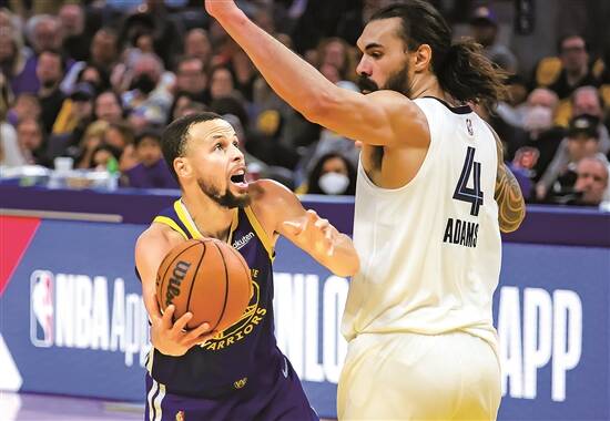 库里(左)在比赛中进攻 新华社发 |