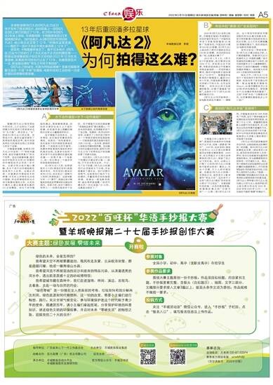 羊城晚报记者 李丽 全球影迷期待已久的《阿凡达2》近日终于发布了首支预告片,此时距离上一部《阿凡达》的上映已经超过了12年。在2009年《阿凡达》全球上映前,导演詹姆斯·卡梅隆曾接受过《羊城晚报》采访。当时他表示,从《泰坦尼克号》到《阿凡达》,他让观众足足等了12年,“但我在这里承诺——我的下一部片子肯定不用大家再等上12年了”。 很显然,卡梅隆最终食言了。据不完全统计,《阿凡达2》迄今已经进行了7次正式或不正式的档期变更——即使这部续集能按计划在本次定档的2022年12月在北美首映,距离前作问世也已过去了13年。也难怪预告片一出,影迷激动感叹“有生之年终于等到你”。 《阿凡达2》的诞生,究竟为何如此艰难?答案可能既辛酸又励志:不是“卡神”在摸鱼,电影科技和工业的每一点进步都比你想象的更艰难。 水下动作捕捉≠水下+动作捕捉? 随着《阿凡达2》首支预告片的问世,人们也明白了这部续集为何在很早之前就被命名为“水之道”。顾名思义,“水”将成为《阿凡达2》的主角。在预告片中,潘多拉星球展现了其神秘的海底世界,其中包括各种巨大的海洋生物以及纳美人的水下坐骑。 卡梅隆曾透露,他想在《阿凡达2》中呈现一个“同样丰富多样、疯狂而富有想象力”的水下世界。但这无疑意味着,曾在他手中发扬光大的3D拍摄和动作捕捉技术必须进一步升级。大部分观众或许难以理解,在水下进行动作捕捉跟在陆地有什么区别。这里必须再一次厘清动作捕捉技术的原理:对目标上的特定光点进行跟踪,然后将捕捉到的光点进行数据处理和分析,从而在计算机上建立起高度拟真的CG立体模型。而水下动作捕捉的难点,简单解释便是,动态的水便好似成千上万面折射镜,会将演员身上佩戴的捕捉点反射出大量错误的标记。 但卡梅隆不会放弃水。众所周知,他对海洋有着很深的情结。他曾说:“我热爱海洋,我还是孩子的时候就觉得海洋就像一个我能到达的外星球。我喜欢神秘莫测的海底和奇妙的海洋生物,也曾参与发明了很多用于水底拍摄的机器和推进器——如果不是一个电影人,我一定乐得当一个海洋学家或是海底探险家。” 在《阿凡达》之前,他那部脍炙人口的《泰坦尼克号》就跟海洋有关。而在拍完《泰坦尼克号》之后,他还拍过一部鲜为人知的《深海挑战》。这部电影只有一个“情节”,就是记录卡梅隆独自挑战世界最深的马里亚纳海沟。在那之前,成功下潜的只有两人——他俩还是结伴下去的。而卡梅隆不仅独自驾驶着“深海挑战者号”潜水艇潜入一万多米深的海底,还用摄影机拍下了全过程。他请来一批顶尖的科学家,后者花了3年时间才制作出一个焊接完美的球型驾驶舱——它能承受的高压是海平面压力的1100倍,一旦失败,脆弱的人体就会在瞬间被挤爆。但这趟令他终生难忘的旅途,显然为《阿凡达2》水下世界的设计和拍摄积累了灵感与经验。 与此相比,《阿凡达2》的水下拍摄似乎真没那么难——起码,它不会太危及生命。不过,为了水下拍摄,《阿凡达2》的演员们必须接受水下训练,并全部拿到了潜水证。他们还要训练憋气,这能使他们每次下水拍摄时,尽量保持自如的面部表情。参演这一部电影的凯特·温丝莱特曾透露:“我闭气最长的一次纪录是7分14秒,这真是太疯狂了。” 传说中的“裸眼3D”会实现吗? 2009年《阿凡达》全球上映前,卡梅隆在接受《羊城晚报》采访时曾好奇反问:“中国现在有多少家影院能播放3D电影?”他被告知,中国当时大概有500块3D银幕,而《阿凡达》上映后的三周内中国就会多出100块3D银幕。他当时的反应是:“哇,这真是太棒了!” 2010年1月4日,《阿凡达》中国首映,首日票房达到3500万元,多地观众买不到票,有影院因放映过于密集而导致设备烧损……市场的强大需求,推动中国电影开始快速进入“3D时代”。根据国家电影局统计数据显示,截至2021年9月底,中国电影银幕数正式突破8万块大关,位列全世界第一。而在2010年之后新建的影院,3D影厅普遍是“标配”,这其中少不了《阿凡达》的最初推动之功。 《阿凡达2》则可能带动一股电影的新技术潮流——裸眼3D。这个传说中的新技术据说能利用RGB激光投影系统,将不同的影像分别投射到观众的左右眼,让人们在无需佩戴3D眼镜的情况下,轻松体验到3D电影的观影效果。 如何达到这一神奇效果?在《阿凡达2》真正诞生之前,人们都很难想象。参演《阿凡达2》的演员大卫·休里斯透露:“我不知道我的场景会是什么样的,因为房间里有16个人拿着摄像机,而他们只是在为詹姆斯·卡梅隆拍摄参考镜头。房间里大约有200人在做各种各样的事。” 除此之外,《阿凡达2》还进行了其他相对于前作的技术革新,包括采用了索尼推出的第一款全画幅数字摄影机Venice、4K数字摄影技术以及48帧/秒的拍摄格式。更别提水下3D拍摄所带来的难度了,正如“卡神”所说:“只要跟水有关,任何事情的难度就会上升十倍!” 套拍的“阿凡达宇宙”是啥样? 卡梅隆之所以被称为“卡神”,那是因为他虽然作为导演的产出不多,但每一部都是“神作”。1997年,他执导的《泰坦尼克号》以18.4亿美元的票房登顶全球影史最高票房。2009年,他又用超过27亿美元全球票房的《阿凡达》,刷新了自己创下的纪录。如今,这部让人们等了13年的《阿凡达2》究竟能不能再创奇迹?事实