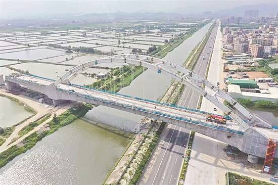 羊城晚报讯 记者李志文、通讯员许嫣然摄影报道:5月21日16时许,由中铁北京工程局承建的汕汕高铁项目雷岭河特大桥跨盐岭河160米连续梁钢管拱(见图)全部完成,为后续架梁及无砟轨道施工奠定了坚实的基础。 雷岭河特大桥跨盐岭河76+160+76米连续梁钢管拱是汕汕高铁控制性工程之一,在国道238线及盐岭河处采用160米连续梁拱跨越,连续梁全长312米。 据项目负责人介绍,针对雷岭河特大桥跨盐岭河76+160+76米连续梁钢管拱施工难度大、安全风险高、技术难度大等难点,项目部详细分析,多次召开专题会议,本着安全、优质、高效的原则,从安全管理、技术攻关、质量控制等多方面着手,优化生产要素组合,合理配置资源,加快项目建设进程。 据悉,汕汕铁路是广东省重点工程、国家“八纵八横”沿海时速350公里高铁通道的重要组成部分,也是粤东地区联系粤港澳大湾区重要通道。建成通车后,从汕头至广州时间将缩短至1.5小时左右,并将与汕漳高铁连接,在珠三角、海西、长三角之间构筑起一条南北向大能力客运新通道,填补沿海通道纵向千余公里无时速350公里高铁布局的空白。