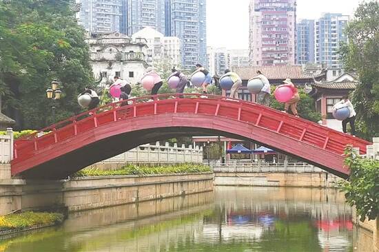 □羊城晚报记者 朱绍杰 通过“声音”领略本地文化 6月10日晚,《有嘢听:荔湾寻声记》在广州粤剧艺术博物馆的露天戏台广福台上演。来自深圳的当代声音艺术家沈丕基与广州本土青年粤剧音乐演奏家朱俊杰、梁倩瑩联手,为观众呈现了一场实验音乐表演。 从2021年年底开始,沈丕基就多次往返广深,为这次表演做准备。沈丕基的妻子是广州人,出生在西关,因此他对西关的生活气息早有耳闻。但这次演出让他对广州的印象大大加深,不再停留于道听途说。 沈丕基走访了广州荔湾的一些老城区。在泮塘五约、恩宁路、永庆坊、龙津路、荔湾湖公园、宝源路、驿巷,他发现荔湾保留了不少现代城市中已经消失的声音:自行车在石板路上辗过的声音,西关大屋屋檐下鸟笼里的清脆鸣叫,街坊邻里炒菜的嚯嚯声,走街串巷收购废品佬的吆喝声,茶楼里的鼎沸人声…… 这让沈丕基深有感触:“广州和深圳两个城市之间最主要的区别是,前者生活化,后者快节奏、发展迅速。广州荔湾保留了传统的生活习惯,这种烟火气让我感动,这正好是我所生活的深圳缺失的部分。” 沈丕基出生在福建闽南的书香门第,从小接受传统艺术教育,大学也选择了传统的漆画专业。年轻时正好赶上“八五新潮美术运动”,也在很多西方艺术思潮里浸泡过。2000年以后,他开始接触到声音艺术。“大众往往对视觉信息更加敏感,声音携带的信息往往被忽略。”沈丕基说,若想领略荔湾浓厚的生活气息和原汁原味的本地文化,“声音”无疑是一个无形而强烈的线索。 “在《荔湾寻声记》创作期间,我认为最重要的是过程。”沈丕基说,这是他第一次在广州荔湾老城区做驻地创作,而声音艺术家必须要做的工作就是尽量收集和保留各种声音,用声音唤醒人们的记忆,“传统文化和当代艺术的结合是我长期以来研究的课题,《荔湾艺境》这个项目恰好给我提供了一个契机。” 用声音观照城市,把城市的声音融入作品,一直是沈丕基的创作主题。《荔湾寻声记》最终设定的作品结构是在体验过程中形成的。来荔湾之前,艺术家设想从色香味的角度去构思,来到荔湾后,因为荔湾与粤剧密不可分的关系,便决定从粤剧的音乐性进入思考。 荔湾区和粤剧艺术的渊源甚深,粤剧早已是老广州人乃至很多90后生活中不可分割的一部分。西关是近代粤剧行业的大本营,汇集和涌现了最多的粤剧名伶;荔湾拥有享“粤剧祖庭”之称的八和会馆,粤剧艺术博物馆具有典型岭南园林风格,承载了粤剧的保护和传承功能。 由此,沈丕基现场参加本地私伙局,与粤剧表演者交流,最终邀请粤剧青年演奏家朱俊杰、梁倩瑩和粤剧演员共同即兴创作。从生疏到默契,他们多次排演合作。最终,表演以“寻声”“得音”“和乐”为三个篇章,形成“三起三伏”的形式。他们采用了《帝女花》这个脍炙人口的曲目,配合即兴演奏,最后以古琴的弦乐来结束整场演出。 一场移步换景式的园林现代舞 本次上演的《有嘢听:荔湾寻声记》是广州永庆坊首届表演艺术月“未来回声”的一个重要部分。“未来回声”自2022年6月开启,囊括以“现代舞”“粤剧”“戏剧”三个板块,超过30组艺术家团队登场。据悉,表演将在永庆坊街区舞台和粤剧艺术博物馆进行,带领观众共同进入这场独特的城市艺术体验。 6月5日,施璇、周念念携手广东现代舞团将他们的现代舞代表作《滃滃澹澹》,从舞台剧场移到永庆坊街区上演。作品标题语出自汉代贾谊的《旱云赋》:“遥望白云之蓬勃兮,滃滃澹澹而妄止。”作品表演最初以舞台形式呈现,当“舞台”变为荔枝湾涌及其相连的木拱桥,表演的不同层面被打开。团队根据荔枝湾涌的空间特性,重新调整编排作品。 永庆坊的环境和街坊,给了表演者很多激发,有很多随机性和偶然性,这就是公共空间相较于剧场独有的魅力。在木拱桥上排练的时候,街坊也积极参与,他们对着演员唱歌,给演员拍照,附近士多店老板甚至拿了道具和舞者们站在一起表演。 演出道具瑜伽球也引起很多观众的兴趣。艺术家表示:“在舞台版的表达中,我们是把日常的物件拿到舞台上让它产生特异性,现在把它放回生活中,它就立即直接融入了日常,孩子老人都愿意靠近它。直到我们要用了,他们才恍然明白原来这个是表演道具。” 这并不是现代舞第一次出现在广州老城区的街巷。2021年11月6日,“@泮塘时光 每日动作”巡游演出在广州荔湾湖公园荔园举行。这是一场移步换景式的园林演出,艺术家希望在演出中打破表演者与观众、舞台与观众席、日常和表演之间的界限。表演者根据表达的需要,选择在荔园的适宜角落演出,观众则在园林中自由走动观看。 “通过艺术的表达唤起观众对荔湾的‘记忆’和‘乡愁’,建立对荔湾的归属感和认同感,是项目的初衷。”策划人杨青表示,项目聚焦对流动中的乡愁的探讨,通过带领观众对舞蹈动作的探索、口述过去的个人故事等方式,重新唤起儿时家的记忆或日常生活的“每日动作”。 到菜市场举办“书写计划” “艺术不应该只是出现在美术馆,让每一个人都是艺术家,让每一个角落都有艺术。”正是基于这样的想法,中央美术学院实验艺术系主任、著名当代艺术家邱志杰带着他的项目来到了广州。2月12日,《谜之自信——永庆坊上元灯会》在广州永庆坊呈现。此次展览空间贯穿永庆坊东西街区,在骑楼、西