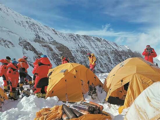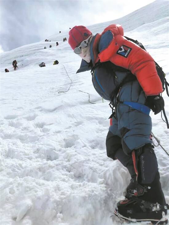 □健健 为何要去登珠峰?缘由应该从我喜欢藏区开始。喜欢一个地方,肯定又和那里的人脱不了关系。但我最喜欢的事,还是对着圣洁的珠峰发呆,我只有一个想法:登顶。 从5200米开始 正午的阳光有点暖,不戴墨镜的话根本睁不开眼。我跟随登山队来到海拔5200米的大本营,前方的珠峰带着一种她就该在这里的霸气与威严,像有魔力一般吸引着我。 我想珍惜可能是这辈子唯一一次在珠峰脚下写生的机会,拿起了画笔。很多人来围观,他们或许从来没见过登山来画画的人。我脸上捂着面巾,庆幸别人应该看不到我的紧张。有一个特别可爱的向导,他总是站在我前面,让我把他画进画里。我拗不过他的执着,给他在一块石头上画了从绒布寺看到珠峰的画面。他说,这石头将会在他家佛堂上供奉着。看着他坚定的表情,我有点感动,突然意识到,我将迎来一个见证历史的时刻。 出发前在大本营举行了隆重且庄严的煨桑仪式,这是藏族传统的祈福仪式。用石块砌起煨桑台,把桑叶放进炉子里烧,散发出阵阵清香。旁边还会放置很多贡品。从海拔最高的寺庙——绒布寺请来的僧人开始念经祷告,他们让每一位队员挑选一件登山装备放在煨桑台旁边,说这样可以保佑我们平安登顶。整个仪式持续了三个多小时,队员和向导们都在此围成一圈。 仪式很庄严,气氛却十分轻松,大家分着吃的喝的,到仪式接近尾声的时候,煨桑台上挂起了经幡,一片欢呼声中,大家把青稞粉撒向珠峰,撒向同伴的脸上……我很喜欢这种仪式感。 我在心中默默祈祷:珠峰,我们来了。 走过绒布冰川 从海拔5800米徒步到海拔6500米营地,一路沿绒布冰川而行。这里是冰塔林的主场,美得很不真实。我有种光怪陆离的感觉,就像在童话中,到处是巨大的冰淇淋。海拔6000米处,冰塔林更像开花似的,一朵朵、一簇簇的,又像是一瞬间冰化的海浪。难怪探险者们称这里为世界最大的“高山上的公园”。 旺堆是我们拉练期间的向导,这条路他走了20年,但他说这里的美每次来都不一样。我问他:“每年都来,工作又这么累,你有没有不想来的时候?”他愣了一下,笑着说:“从来没有这样的想法。每年能来珠峰,是我的荣幸。”这大概就是有信仰加持下的热爱吧。 我们需要翻越大名鼎鼎的北坳大冰壁才能到达海拔7028米的营地。从这里开始,需要依赖路绳往上攀登。我们换上连体羽绒服,脚踩高山靴,套上冰爪,戴上安全带,一切技术装备都隆重登场。最难的就是亮冰区。亮冰很硬,需要小腿用力,把冰爪刺进冰面,仅靠脚前掌找到着力点,再往上攀,非常耗费体力,也考验攀登者的心理素质和耐力。 我形容不来自己是怎么攀上去的。风越来越大,我尽量把脸贴近冰壁,想躲过刀刃一样的风。周围能见度越来越低,最后只剩白茫茫一片,我正默默地调整着情绪,突然头顶上有人大喊:“天气不好,立马下撤。”我甚至来不及慌乱,只听到身边的旺堆说了声“跟紧我”,便一手扣着主锁,一手搭在他的肩膀上,开始往下撤。 我不停地跟自己说,要相信向导,相信冰爪,相信自己。就这样一口气玩命似地往下冲,居然很快便回到了亮冰区。旺堆示意我,得用八字环下降了,他先下,在下面保护我。我松了一口气。 可是,我突然发现绳子绷得太紧,我被压在原地动不了了!我大喊:“我动不了,我的腰要断了!”心头慌乱,力气也使不上,整个人只能仰脸躺在冰面上,情绪接近崩溃。就在这时候,一个背着很多东西的身影从天而降,他看了看我,压低身子,一声吼,似乎用尽全身力气,终于帮我放松了绳子。我用力蹬了蹬,下降器又能用了。面前的人露出了可爱的小虎牙,笑着说:“可以了。”他背着沉重背包的身体晃了晃,转身又去帮其他人了。 他叫多吉,一个汉语讲得很不流利的年轻向导。下了冰壁以后,天已经黑了,走在碎石路上的我再次碰到他。他不放心地说陪我走,我看了看他那巨大的背包,摆摆手让他别管我。漆黑中,我看到他一路走一路不停回头。此时的我已不间断地走了十多个小时,累得几乎虚脱,但一种暖暖的感觉却涌上心头。 冲刺最高峰 我们休整了三天后,准备正式冲顶。 海拔7790米时,我们遇上返回的修路队。他们是珠峰领路人,负责保证登山路线的安全。我曾问他们阳刚帅气的领队多吉次仁,是否为自己的工作感到自豪?他却说:“曾经挺自豪的,但现在其实挺惭愧。年复一年地重复着传统路线,没有太大突破。”谦虚啊。记得我到大本营的第一天,多吉次仁就跟我说:“你将会遇到非常多的困难,记住,无论如何一定要坚持登顶。我会把路绳修护到最佳状态,而你要加倍加油。”他的话,像魔咒一样一直激励着我。 自8300米营地开始,往上的路是一个又一个岩石坡,各种冰岩混合的路面,几乎没有一处是轻松的。凌晨两点,已有队友们沿着山脊开始往上攀登,漆黑中能看到每个人的头灯发着橘黄色的光。我跨出帐篷,顾不上欣赏满天星斗,想加入队伍。我的向导——达瓦桑布弯下腰帮我穿好冰爪,在我耳边低声说:“下过雪的路不太好走,让他们先走。” 达瓦桑布之所以成为我的向导,是因为他很强。而我,体力不佳,技术不佳,胆子还小。我们成了队伍里实力最悬殊的搭配。我得承认,我有点让他失望。以前他带的都是最强的队员,总是第一个登顶,但这次我总是倒数第一个,还一脸委屈地说:“我真的不累,我只是走不动!”我一直尝试让他明白一个道理:作为一个向导,能