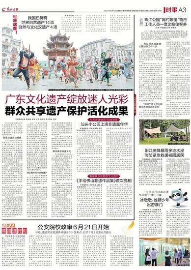 羊城晚报记者 黄宙辉 林翎 文艺 通讯员 粤文旅宣 钟轩 6月11日是我国2022年文化和自然遗产日。当天,广东各地举办文化遗产系列活动,呈现出广东文化遗产的迷人光彩,让群众共享文化遗产