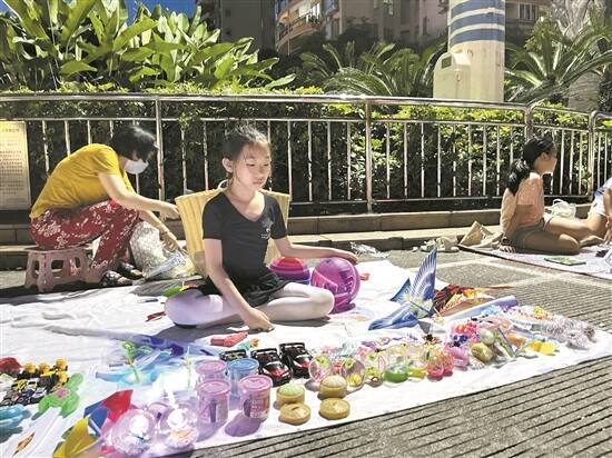 骏景花园内,小学生开起跳蚤市场 |