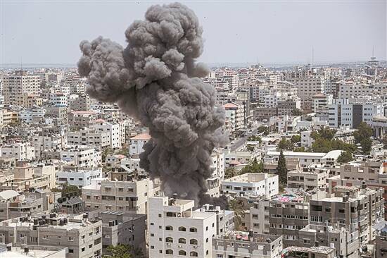 8月6日,加沙城遭遇以色列空袭后升起浓烟 新华社发 |