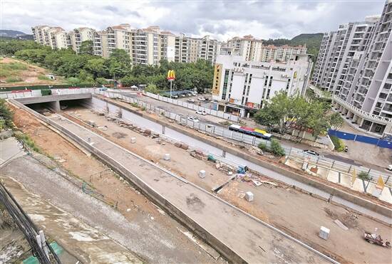 文/图 羊城晚报记者 徐振天 实习生 谢绮琪 规划道路超过“预期完工时间”两年仍未完工,究竟卡在哪?近日,羊城晚报记者收到广州市天河区华南御景园小区的居民反映,该小区门口的规划道路云溪路早在2017年就开始动工,原计划在2020年10月完工,然而该工程至今还在断断续续地施工中。此外,该路段早晚高峰车流量较大,云溪路通车前,过往车辆需借由仅两车道的村道通行,私家车和多条公交线路挤在一起,此处路况常常拥堵不堪。 8月14日,云溪路工程建设方相关负责人表示,2017年项目取得规划批复后开工,进度受征拆工作影响较大,2021年才完成全部的征拆工作。今年4月,经相关部门协调周边居民,云溪路工程隧道东开口段施工得以顺利开展,现在正开展该段南侧辅道的建设,计划年内完工。 居民心愿:盼尽快开通便利出行 “原计划2020年完工,将近两年的时间过去了仍未通路。”记者从华南御景园居民处了解到,小区前的规划道路云溪路于2017年动工,当时工程公示的完工时间是2020年10月。如今,距离公示的时间已经过去了近两年,附近居民对未完工的原因感到不解。 相关规划文件显示,云溪路工程全长约4.3公里,西起华快西侧的中科院化学研究所,经过华南植物园、华南御景园、岑村、市交警支队、凌塘村等地,东至天河区软件园,主线宽40米,设计时速为每小时60公里。 由于云溪路工程未完工,目前周边居民出行主要依靠旁边的村道岑村公路。“每天上下班高峰期出行真叫人苦不堪言,短短几百米的路程能堵上半小时。”附近居民反映,岑村公路路面狭窄,仅能供两辆车并排通行,难以满足该路段的通行需求。除此之外,该路段路面坑坑洼洼,驱车经过像走山路一样颠簸。 据介绍,岑村公路两侧不仅分布着多个住宅小区,还有小学和幼儿园。岑村公路附近没有地铁站,居民主要依靠公交车和私家车出行,每到工作日,居民上下班和接送学生上下课的车流量让这条村道不堪重负,地图软件上拥堵成暗红色成为常态。“希望云溪路尽快开通,分担交通压力,让我们实现轻松出行。” 现场走访:工程正在围蔽施工中 8月10日上午,羊城晚报记者在华南御景园走访看到,小区门口的岑村公路呈“S”形。尽管早高峰已过,但由于该路段路面狭窄,经行车辆不得不低速排队通过。放眼望去,路面崎岖不平,由于近段时间降雨较多,多处坑洼变成了一个个“小池塘”,路面的车辆摇晃颠簸,路边的行人也要小心翼翼避免被积水溅到。 在岑村公路一侧,一道道绿色的施工围蔽墙表明云溪路仍处于施工状态。华南御景园门口的保安告诉记者,云溪路工程已修筑多年。“来看房的租客会问门口这条路什么时候开通,我们也没法给出准确答案。”路旁的一位公寓店主称,他观察到隧道在去年下半年就已经基本建好,但后来有一段时间处于停工状态,前不久才看到有工人施工。 俯瞰云溪路工程工地,两位工人正在隧道口施工。据了解,早期的云溪路工程规划里并无修隧道的计划,起初该路段拟从华南御景园中间穿过,将小区分割为南北两半。云溪路工程项目公示后,方案遭到小区业主反对导致工程无法推进。此后,经过多方协商与专家评估,云溪路工程华南御景园前的路段改成下沉式隧道。 道路施工方:正开展南侧辅道建设 记者注意到,今年3月,曾有相关方面的工作人员公开表示,“云溪路工程预计在5月底可以拉通主线隧道,6月底可以完工。”不过,如今已到8月,工程仍未完工。 云溪路工程的完工日期为何一拖再拖?准确的完工时间究竟是何时?8月14日,云溪路工程建设方的一名负责人向记者表示,2017年该项目取得规划批复后开工,进度受征拆工作影响较大,2021年才完成全部的征拆工作,此后,2021年10月完成了云溪路工程位于华南御景园前的隧道主体结构建设。 上述负责人称,“2022年4月,经各有关部门多次协调周边居民后,隧道东开口段施工得以顺利开展,现在正开展该段南侧辅道的建设,计划年内完工”。