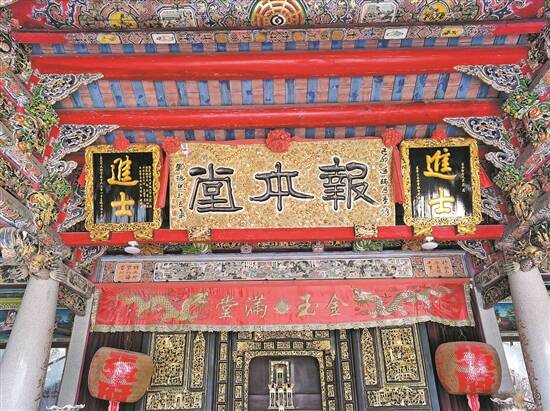栏目统筹/魏琴 文/图 羊城晚报记者 张晓宜 实习生 周自航(除署名外) 普宁以东,练江之源,有一座植根于潮汕平原上、有着600多年历史的古村落——泥沟村,村内数千座潮汕特色古建筑参差交互、错落有致,堪称潮汕古村的典型代表。居民住屋,依山临水,各依地势朝向,有“倒地梅”之美称。羊城晚报《大美岭南》第14站走进“广东十大最美古村落”之一的揭阳普宁泥沟村,穿越数百年历史长河,感受潮汕文化的独特韵味。 自高处望去,泥沟村地势南高北低,东北有白坑湖斜卧、西南有后岭溪绕流,其间沟渠纵横交错、池塘星罗棋布。这样的地形与水系分布现状,将泥沟村分割成以“寨围”为单位的上百个民居聚落。 俯瞰整个村落,青色的琉璃瓦伏在灰白的土墙之上,鳞次栉比,方正有致。由于寨围被一块块湖泊水塘分割包围,使民居分布呈现“倒地梅花”的特点,像一片片花瓣一样聚拢在一起。 据普宁摄影家协会会员、泥沟村村民张声金介绍,这里的民居建设风格多以潮汕特色的“四点金”与“下山虎”为主,“四点金”结构布局的房屋有近三百座,“下山虎”结构布局的房屋有千余座。 “下山虎”俗称“三间二伸手”,主座三开间,天井两侧为“伸手”(一般用作厨房与储物空间),因其布置下的宅院形状如虎如狮,因而得名“下山虎”。“四点金”在潮汕民居中极具特色,它因四面山墙似汉字“金”字而得名,过去在潮汕地区,一座“四点金”是潮汕先民的理想住宅,也是身家显赫的象征。 走进村内的张氏宗祠报本堂,绚丽多彩的彩绘与木雕映入眼帘,龙凤呈祥、飞禽走兽的浮雕图案更添古色古香,华丽的金漆在角落中熠熠闪亮,给人一种“恍似钩晶宫殿里,四檐花雨乱莺啼”的感觉。 登临山顶,俯瞰村落,数百年的兴衰如浮华般历历在目,雕梁画栋不再,昔日的繁荣被吹散成历史的黄沙,但泥沟古村落却从过去顽强地活到今天,房屋仍在,人烟依旧。