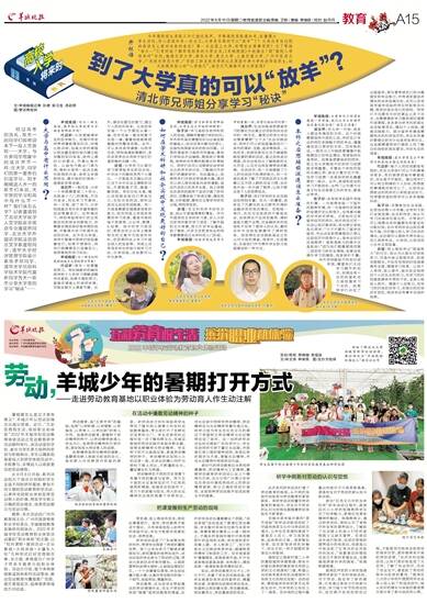 策划/统筹 陈晓璇 蔡旭嘉 文/林文惠 钟紫佩 图/主办方提供 暑假要怎么度过才更有意义?羊城少年以劳动实践交出高分答卷。近日,“五彩劳育悦生活,缤纷职业初体验”2022年羊