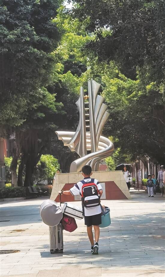 □图/文 陈雅妮 孩子离开家去上学了,我面对空空如也的房间,不禁想起昔日台灯下的背影。现在,手机里每天都会收到几条学生专用卡的扣费信息,这是娃在学校里消费时给我的最高频、也是仅有的信号。 军训几天回来,他的双臂热出了痱子一排排,人跟涂了漆一样乌黑发亮。送他返校,他叮嘱我:“妈,你别帮我背行李。”虽然我专程借了手拖车,但儿子把3个袋子挂在行李箱杆上推着走,一个都不要我拿。我说儿子,校门口拍个照吧。他说,妈,我不想拍,现在进去了。 第一次离家上学,没说不适应;第一次独自拿那么多行李,不要妈帮忙;第一次自己支配经费,井井有条;第一次讲电话还要倒计时,留出30秒来方便后来的同学…… 背影渐行渐远。儿子不是变冷了,而是变酷了。 随手拍专用邮箱:ycwbwyb@163.com