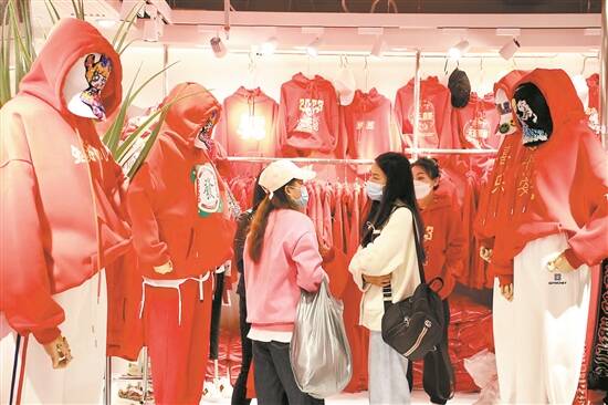 市民选购“新年红”服饰,寓意来年红红火火 |