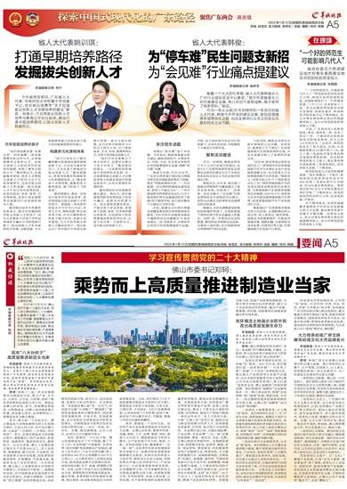 羊城晚报记者 张闻 “党的二十大召开后,佛山把学习宣传贯彻党的二十大精神作为首要政治任务,在全市迅速掀起热潮,形成浓厚氛围。”近日,佛山市委书记郑轲在接受访谈时表示,佛山正把学