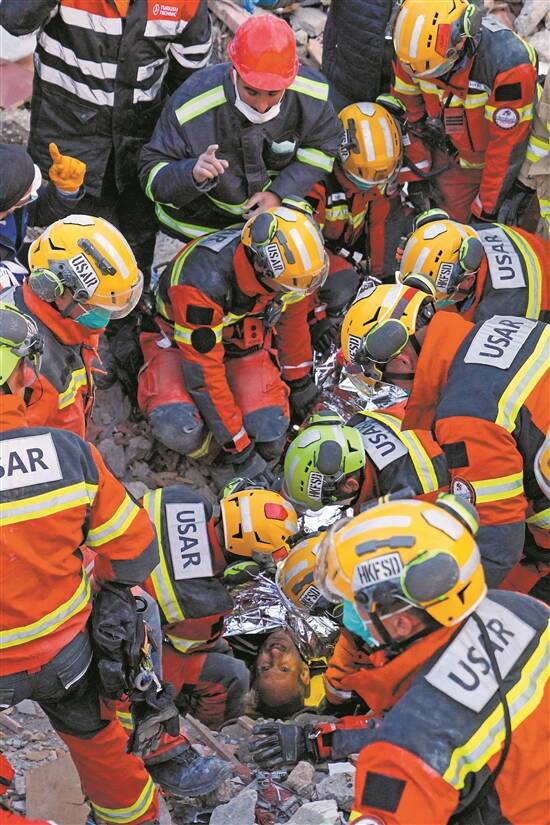当地时间2月11日下午,中国香港特别行政区救援队在安塔基亚的废墟中成功救出3名幸存者 |