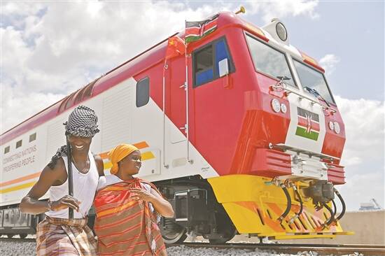 在肯尼亚蒙巴萨,当地民众在中国承制的蒙内铁路首批内燃机车旁载歌载舞(2017年1月11日摄) 新华社发 |