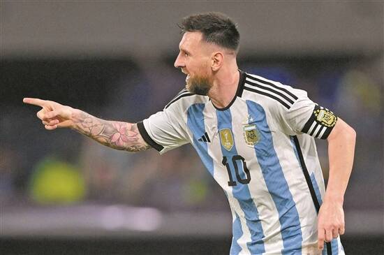 羊城晚报记者 刘毅 3月29日上午上演的一场国际足球热身赛中,世界杯冠军阿根廷主场以7比0大胜弱旅库拉索。队长梅西打满全场,上半场就上演帽子戏法并贡献一次助攻,带领阿根廷以5比0领先并进入中场休息。 梅球王收获国家队第102球以及职业生涯第57次帽子戏法,他在第20、第33、第37分钟分别取得进球,其中两次助攻来自因伤缺席世界杯的中场大将洛塞尔索。梅西在国家队上演9次帽子戏法,自从去年9月以来为阿根廷出场12次,只有在对波兰的比赛没有进球,他在那场比赛罚丢一个点球。 当本场比赛进行到第77分钟,迪马利亚创造点球机会,阿根廷第一点球手梅西并没争取大四喜,而是由迪马利亚亲自主罚点球命中。 继伊朗球星阿里·代伊(109球)和超级巨星C罗(122球)之后,梅西成为全世界第三位国家队进球数超过100个的球员。 在三位超级得分手之中,相对而言,梅西的进球含金量更高。因为亚洲有很多弱队,全盛期的阿里·代伊配上整体实力碾压对手的伊朗,非常有利于这位伊朗当年的头号球星取得进球。 C罗早已过了巅峰期,今年1月只能加盟沙特联赛球队利雅得胜利,但最近在2024欧洲杯预选赛对弱旅列支敦士登和卢森堡的比赛还能分别攻入两球。 南美洲没有列支敦士登、卢森堡、圣马力诺、安道尔这种弱队,由于南美洲只有10支球队而且大多实力很强,梅西和阿根廷参加美洲杯不需要经历预选赛,而是直接进入正赛。缺少了欧洲杯预选赛这种“刷”进球的好机会,梅西的国家队进球比C罗少了20个。