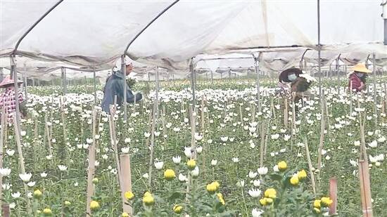 羊城晚报记者 戴灵敏 通讯员 黄方盈 清明节是追思先辈、寄托感恩情怀的重要节日。近年来,节俭环保、文明祭祀成风尚,祭扫新风悄然兴起,鲜花追思渐受青睐。随着清明节的临近,记者来到珠三角菊花主要供应地之一,种植菊花约20年历史的阳江阳春市潭水镇旗鼓村鱼田自然村,走访阳江市鲜花销售点,了解今年清明节菊花的销售情况。 在鱼田村菊花基地,记者见到,一片片黄色、白色的菊花铺展在田野间,清新的花香扑鼻而来。花农有的在花丛间采摘菊花,有的在给鲜花套袋、包装,还有的开着三轮车运送包装好的菊花。 “菊花在三八妇女节就陆续上市了,现在临近清明节,是市场需求最大的时候。”鱼田自然村村民小组长谢绍成告诉记者,基地里的菊花几乎都是供应给清明节市场的,连日来正是菊花采收上市的旺季,花农们抓住时机,大量采收菊花。鱼田村如今种植70多亩菊花,主要品种为黄菊花和白菊花,亩产量约为4.5万枝,主要销往珠三角城市。 “今年的菊花销量比往年增加五成,但最近市场收购价偏低。”谢绍成介绍。他认为主要原因是,虽然今年是疫情后的第一个清明节,但由于一些地方有“闰二月”不祭扫的习俗,所以菊花在清明节的市场收购价格不太理想,为每枝0.5元。谢绍成自家种植了4亩菊花,每亩收入约2万元。“今年的菊花受到了气温高、病虫害的影响,希望明年的市场会更好。”谢绍成表示。