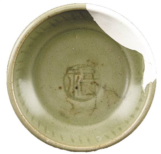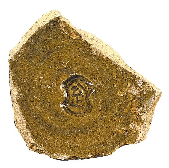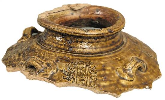 佛山奇石村出土酱黄釉“政和元年”四系罐残片 (佛山市博物馆藏) |