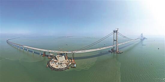 羊城晚报记者 董鹏程 通讯员 粤交集宣 岳路建 何紫琪 王鑫洲 陈旭彬 浩瀚辽阔的伶仃洋上,桥塔矗立、桥面蜿蜒入海,深中通道如长虹卧波串联起珠江两岸,即将成为撑起粤港澳大湾区发展的“交通脊梁”。4月28日上午9时37分,随着最后一颗销钉的敲入,广东交通集团在建的国家重大工程深中通道伶仃洋大桥正式合龙,这也标志着项目桥梁工程实现全线合龙。 克服诸多不利条件历时五年合龙 深中通道全长约24公里,处在粤港澳大湾区“A”字型交通主骨架最关键一横,是世界罕见的集海底钢壳沉管隧道、海中超大跨径桥梁、深水人工岛、水下枢纽互通于一体的超级集群工程。 项目桥梁工程长约17公里,包括伶仃洋大桥和中山大桥及非通航孔桥等,其中中山大桥主跨约580米,已于2022年6月完成合龙;28日合龙的伶仃洋大桥为项目关键控制性工程之一,主跨1666米,主塔高270米,相当于90层楼高,通航净空高度为76.5米,位居世界前列。 从2018年9月,伶仃洋大桥第一根主墩桩基开钻,到2021年7月,大桥东、西主塔封顶,双塔矗立伶仃洋,再到昨日合龙。五年时间里,建设团队克服了全海上作业、建设条件复杂、16个台风等诸多不利条件,最终让伶仃洋大桥巍然矗立于海天之间。 创造多项国际领先桥梁技术 焊花四溅,机械臂穿梭于钢结构之间,一片片钢箱梁如“拼积木”般完成生产。这是深中通道项目打造的大型钢箱梁智能制造生产线,自动化激光切割、全自动焊接及涂装机器人等智能化设备,均由一套智能制造系统控制。 “我们单元件制造智能设备使用率达100%,板单元制造生产效率提高了30%以上,智能喷砂效率相比于传统手工喷砂效率提升5倍,真正实现提质增效,推动国内钢桥梁制造技术的发展。” 深中通道管理中心副主任范传斌介绍。 此外,为满足桥面高达91米的抗风需求,建设团队通过三年多刻苦攻关,研发了新型组合气动控制技术,将此前大跨整体钢箱梁悬索桥颤振临界风速水平提高了26%,达到88米/秒,能抵御17级台风,达到了世界领先水平。 面对高温、高湿、高盐的恶劣环境,深中通道成功研发了目前世界强度等级最高的2060兆帕悬索桥主缆钢丝索股以及锌-铝-镁镀层,主缆钢丝耐久性提升50%,扩大了我国桥梁产业的世界领先优势。此外,项目突破了海域深厚软基大型锚碇建造难题、首创钢桥面板全熔透焊接接头技术、研发应用了国内首台一体化智能筑塔机,共创造了5项国际领先的技术,实现了桥梁高质量建设,进一步巩固了我国桥梁建设的领先水平。 撑起广东高质量发展“交通脊梁” 深中通道全线为双向八车道高速公路标准,设计速度每小时100公里,设计使用年限100年。通车后,从深圳至中山的时间将从目前的1个半小时缩短至半小时左右。 目前,粤港澳大湾区高速公路通车里程超过4500公里,快速交通网络基本形成。深中通道建成通车后,将与虎门大桥、南沙大桥、广深高速、广珠东线、广珠西线等通道一起,将粤港澳大湾区城市群串珠成链,构建大湾区一小时经济圈新格局,进一步推动珠江两岸人流、物流、资金流、信息流的互联互通,也将为珠江东西两岸提供更多的合作空间、发展空间、想象空间。