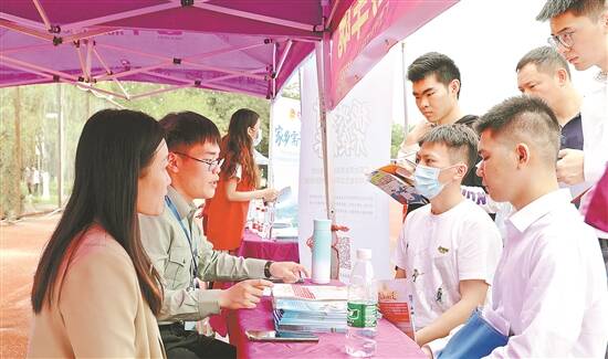 羊城晚报讯 记者陈亮,实习生樊雨晴,通讯员廖晓键、武文摄影报道:4月28日,由广东省教育厅主办、广州中医药大学承办的广东省2023届普通高校毕业生系列供需见面活动——中医药类(含食品、化工)专场在广州中医药大学大学城校区举行。省内外近600家医药类及食品化工类企事业单位、卫生行政部门线下或线上参会,共吸引近4000名毕业生入场求职应聘。其中,招聘岗位与中医药专业相关的单位共200家,占参会单位的66.67%,提供就业岗位共计2.8万个。 记者了解到,此次招聘会上,不少地市的二甲医院吸引了毕业生的关注。广州中医药大学相关负责人介绍,本次招聘会的一大亮点是基层医院的“出圈”,目前基层医院对中医药人才的吸引力大增,学生去基层的意愿也逐渐增强。 云浮市卫生健康局、韶关市武江区卫生健康局等单位组织下属机构组团到场招聘。汕头市潮南区中医医院为应届本科毕业生提供35个带编制岗位,现场进行资格审核发放面试通知。中山市中医院、清远市中医院、江门市新会区人民医院、台山市中医院等单位为毕业生开出了1.2万元以上的月薪条件。 梅州市平远县人民医院相关负责人表示,本次计划招聘临床医学岗位、中西医临床医学岗位、中医学岗位、针灸推拿学岗位等共14人,毕业生享受事业单位编制,纳入梅州市“青梅计划”,五年内补贴20万元。 “我们计划招聘10-15名临床中医师,希望能招聘到本科以上学历且专业能力较强、有责任心的同学。在完成住院医师规培后可以上岗,税后工资每月1.5万元左右。同时,本科生一次性发放7万元、研究生发放10万元安家费,并提供单间宿舍。”台山市中医院相关负责人表示。