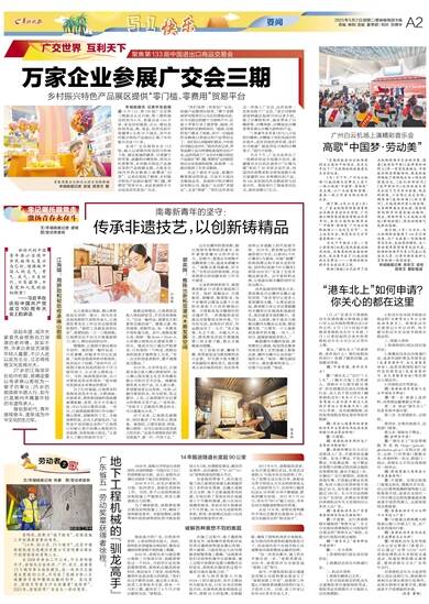 羊城晚报讯 记者许张超报道:5月1日,第133届广交会第三期展会正式开展,第三期的展出时间为5天,参展企业1.04万家,涉及纺织服装,办公、箱包及休闲用品,鞋,食品,医药及医疗保健等5大类1