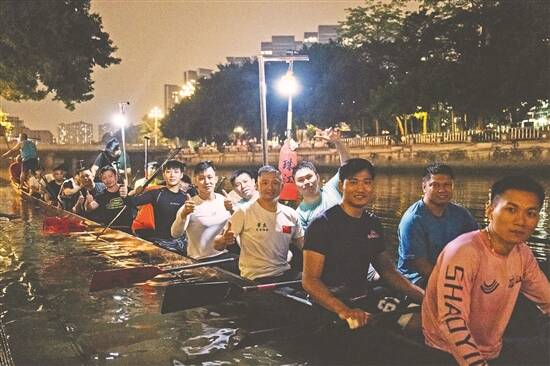 羊城晚报记者 徐振天 实习生 卢佳圳 发现了没?端午将至,走过广州大大小小的河涌,龙船景渐盛。在人们高涨的热情中,广州已进入“龙舟时间”。 近日,“广州房东半夜还在练习赛龙舟”“房东赢了会免租发奖金”的消息在网上引发热议。有人好奇,龙舟竞渡真的是房东的“高端运动会”吗?也有人关注,“房东累不累”“房东给不给”?带着这些疑问,记者走近夜晚开训的龙舟队,从他们的视角,领略疫情之后格外澎湃的端午心潮,寻迹龙舟精神在水乡村落的代代传承。 六十天紧张备战 船桨划开平静的水面,“哗啦啦”的水花打破黄埔区下沙社区夜晚的宁静。距离珠江前航道约一公里,水面开阔的乌涌上,四盏白炽灯晃荡着照亮远近水面,随着雄浑的“一二三四”号子声由远及近,整齐划一的划桨节奏越来越快,一条40多米的细长龙舟“嗖”地从围观群众眼前一闪而过——这是5月16日黄埔街龙舟队的夜训场景。 为了保证训练效果,龙舟队保持着平均约一秒钟摆桨三次的节奏。宽大的船桨对抗着水的阻力,推动梭形船体快速前进。尽管龙舟队的队员个个年富力强,但经过连续数百次的大幅划桨,大家逐渐显露出疲态。只听见一声响亮的吆喝,龙舟终于“过线”,一名位于船首的队员早已满脸通红,直说“快划到吐了”。 记者了解到,今年,黄埔区有两支队伍参加广州国际龙舟邀请赛的传统龙舟竞速项目,黄埔街龙舟队就是其中一支。作为广东地区规格最高的龙舟赛事之一,广州国际龙舟邀请赛是中国传统体育运动的五星级赛事,一直以来都是龙舟队逐鹿的赛场,每年吸引逾百条龙舟参赛,在珠江河上竞逐,热闹无比。不过,由于受到新冠疫情影响,该赛事已连续三年停摆。 疫情过去,再盼蛟龙出水,再听壮士击鼓!从今年4月16日到6月17日,黄埔街龙舟队计划训满60天,这个训练计划比往年提前了近一个月。龙舟队队员们平日白天都要上班,所以只能晚上八点到十点训练。又由于龙舟比赛是在白天,黄埔区龙舟分会副会长张伟潮担心长时间的夜训不利于队员适应正式比赛场景,有时也会利用周末的白天组织训练。 训练有何难点?黄埔街龙舟队教练刘尧森告诉记者,广州国际龙舟邀请赛要求跪扒式的动作,龙舟队里的大部分人都是首次接触,“前期训练主要以学习跪扒动作为主,下阶段再练体能、耐力各方面。” 为期两个月的训练是辛苦而枯燥的,但对于这些在水乡环境长大的人来说,对龙舟的情怀却抵过了身体的疲惫。“大家坐上一条船,为街道去争光,这是一份荣誉。”张伟潮说。 “不止乎有钱没钱” 社交平台上,“广州身家千万的房东半夜还在练习赛龙舟”成为热议话题。这些健儿真的都是手握几套楼钥匙的房东吗?据悉,不少扒龙舟的队员都是本地村民,其中一些人确实拥有不止一套房子,有房子在出租。而事实上,对赛龙热情高涨踊跃参与的远不止“房东”。 在下辖下沙村、新溪村、珠江村和大吉沙村四个自然村的黄埔街,今年的龙舟活动甫一公布就受到热情关注。张伟潮告诉记者:“村民得知街道准备代表黄埔区参赛,都踊跃报名。刚开始报名时有两百多人,我们经过重重筛选,最终选出七八十人参赛。” 在人们的期盼中,广州已经进入“龙舟时间”。除了黄埔区黄埔街之外,各区龙舟队也都“卷”起来了。在增城区,黄沙头村邻近的东江连日来热闹非常,一艘传统大龙舟不时变换速度,在宽阔的江面劈波斩浪;在天河区,猎德涌里响起了阵阵鼓声,猎德龙舟队队员们也正积极备战广州国际龙舟邀请赛…… 备赛的激情弥漫。乌涌两岸,努力夜训的黄埔街龙舟队引来不少过往居民“围观”。“房东听我喊加油,赢比赛就给免两月房租”,这样一则消息近日在网上不胫而走。真的如此吗?面对记者的发问,张伟潮只笑道:“划龙舟不会在乎有钱没钱,几百年来都是如此。我们训练的时候很多观众都会拍到,有人把训练视频传上网,说是‘房东’的竞赛,但这都是大家开玩笑而已。” “不是仅仅只有‘房东’参与龙舟活动,广州国际龙舟邀请赛也邀请到很多外地的龙舟队伍,也有很多社团、公司甚至游客参与到活动中。”张伟潮进一步解释道,“我们更希望通过龙舟激发大家团结的精神,将龙舟作为纽带,让大家更多地了解广州的传统文化。” 零零后的龙舟情结 江涌交织的珠三角,以龙舟为主体的舟楫文化历史悠久。在龙舟文化熏陶下长大的水乡儿女们,对龙舟都有着一种质朴深厚的感情。龙舟情结一代代延续传承,经久不衰。 时间已超过晚上十点,乌涌两岸围观的人群渐渐散去,黄埔街的龙舟停泊在岸边,队员们胳膊酸痛已然力竭,四周安静得能听到喘息声。张艺瀚从船尾跳下来,高兴地在朋友圈发出“打卡下班”的动态。他很年轻,今年23岁,是龙舟队里最年轻的队员;他也很老练,“记不清第几次参加龙舟比赛了,大概是第三次了吧!” 过去一个月里,除了特殊的天气,每个工作日的晚上和部分周末,张艺瀚吃过晚饭稍作休息,就会从家里出发,骑上五分钟电动自行车,来到乌涌的龙舟训练地点准时“打卡上班”。平时戴着眼镜的他略显斯文,一上舟手握船桨,用他自己的话形容即“卖命地划”,“一开始训练,第二天总是腰酸背痛,现在已经慢慢适应了。” 张艺瀚从小在父亲的影响下接触龙舟,如今他还清楚地记得幼时登上龙舟时兴奋、好奇的心情。他向记者回忆说,令他印象最深刻的便是