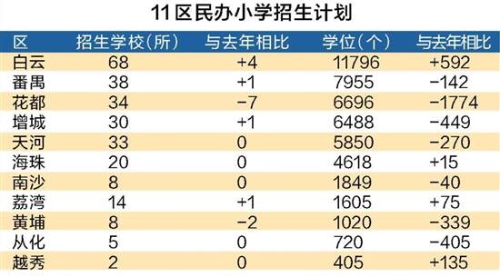 羊城晚报记者 蒋隽 实习生 姚奕文 谭思慧 许瑞晴 6月14日,广州民办小学(简称“民小”)电脑派位,招生总学位减少2622个,跨区招生总数减少,最贵民小学费达26.8万元/年。 今年是广州中小学“公民同招”第4年,也是民办小学实行免试入学、摇号派位的第4年。近几年,民小的学位数量和报名人数双双“跌跌不休”。今年情况有所改变:在招生学位继续减少的情况下,报名学生数止跌,与去年基本持平。这是否意味着民小下行的“行情”已触底? 羊城晚报记者梳理发现,近年民小办学规模和在校生人数两大指标的下滑趋势是显见的,今年报名人数的持平,大抵证明了家长对多元化教育的需求,恐怕并不能止住民办学校的颓势。 现象 报名人数与去年持平,招生学位再减 记者根据广州市教育局和“广州市义务教育学校招生报名平台”公布的数据统计,今年填报民办小学志愿的适龄儿童共34516人,与去年的34233人基本持平;共260所民小提供49002个招生学位,比去年的51624个减少了2622个,招生学校数共减少3所,7所民小首次招生。 具体到各区,白云是全市民小数量和招生计划最多的区,最少的则是越秀;与去年相比,花都的民小数量和招生数减少幅度最大,多数的区招生学位缩减,白云、越秀、海珠则有不同幅度的增加(详见图表)。 从学校来看,全市招生人数最多的民小是广州市花都区黄广小学,达578人。招生计划减少最多的学校是广州英豪学校(民办小一),招90人,比往年缩减了80%,减少了360人;其次是广州理工实验学校(民办小一),招300人,缩减了46%,减少了273人;排名第三的是广州市花都区华艺学校(民办小一),招180人,缩减了50%,减少了180人。 此外,今年有7所民小首次招生,4所分布于白云,荔湾、番禺和增城各1所。 跨区招生总数减少,已录取计划增多 有住宿条件的民校可跨区招生,但招生比例由区教育局决定。近年来,不少区教育局持续缩减跨区招生比例。据统计,今年11区共有71所民办小学跨区招生,招生学位3466个。除越秀无民小跨区招生之外,荔湾、海珠、白云和增城跨区招生学位数有所增加,其他区则均减少。总体而言,跨区招生总数继续缩减。 同时,按各区政策规定,九年制学校等可直升录取。数据显示,“九年制学校等按本区规定已录取”的计划共7177人,较去年增加489人,占全市招生计划人数的14.6%。其中,增城已录取的计划高达2166人,占该区今年招生计划的33.3%;天河区仅21人,占0.4%。花都是已录取计划增加最多的区,比去年增加397人。荔湾、越秀、黄埔、南沙的九年制学校则均无已录取计划。 学费最贵的26.8万元/年 学费方面,民办小学的学费差距较大,学费最高的是今年首次招生的荔湾爱莎文华学校(小学部),达26.8万元/年,超越去年最贵的增城区斐特思学校,每年高出2万多元;学费最低的是增城区新晖学校,为7200元/年。每学期学费在50000元以上的学校有10所,学费在10000元以下的学校有158所。大部分民小的学费位于1.4万-2.4万/年的区间。 解析 “公民同招”4年,民小颓势恐难止 2020年,广州市启动“公民同招”免试入学,明确不能掐尖,民办小学首年开始摇号派位招生。2021年,“公参民”脱钩,民校被要求切断了与公办名校在名称、教师、财务、招生、行政、办学等方面的关系。这两大政策让民办小学进入调整淘汰期。 4年来,民办小学总体处于下行区间。今年,民小报名人数与去年持平,是否意味着“行情”已经见底?未必。 首先,今年报名人数的持平,证明了家长对多元化教育的需求。教育本质上是一种特需服务,服务于孩子成长,每个家庭对教育的需求是不同的。真正因材施教、个性化、千人千面的教育服务,是教育的终极理想。某种程度上,民办教育是最有可能探索这一理想的教育机构。因此,必然有一群稳定的家长和孩子会选择民校,但这样的家庭毕竟是少数。也许对广州来说,就是这3万多人的体量。具体是多些还是少些,需要持续观察明年甚至后年的数据,才能做出更准确的判断。 其次,报名人数的持平,并不能止住民办学校的颓势。俗话说,外行看热闹、内行看门道。民办小学规模的变化,才真正反映了民校从业者、内行人对这个行业前景的信心。 4年来,民办小学的学位供应量持续减少:2021年招生总计划比2020年减少2833个,2022年招生学位暴减1.3万个,今年再减2622个,低至4.9万个。 另一个数据可能更能说明民办小学的收缩态势——根据广州市教育局每年发布的“广州市教育事业发展统计公报”,“公民同招”前的2018年,民办小学148所,在校生约33.24万人;2019年,民办小学141所,在校生约33.42万人,比上一年增加0.18万人;但2020年“公民同招”之后,当年民小在校生约31.67万人,下降了1.75万人;2021年民小136所,在校生数量再减少1.09万人。2022年的数据尚未公布。 办学和就读,是最实在的“用脚投票”。从近几年民校办学规模和就读人数两大指标来看,无疑都是下滑趋势。 可以说,目前广州民小市场依然处于调整期,教育质量与特色需要时间与市场的检验。希望能在民办教育中看到与众不同的花朵,给不同的家庭提供不同的教育解决方案。