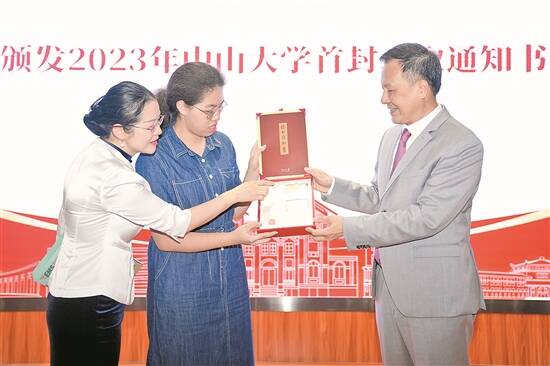 文/羊城晚报记者 陈亮 实习生 应子珺 图/羊城晚报记者 梁喻 实习记者 刘浩靖 7月16日上午,中山大学2023年首封录取通知书颁发仪式在广东实验中学举行。中大今年首封录取通知书“花落”省实2023届南山三班毕业生陈麒羽手中。据悉,陈麒羽是其家族近三代人中第十位中大人,今年9月,她将进入中大基础医学强基计划班就读。 近十年约1200名省实学子考上中大 教育部自2020年起,在部分高校开展基础学科招生改革试点(又称强基计划)。中大基础医学专业首批入选了教育部基础学科拔尖学生培养计划2.0基地,开展本博衔接序贯培养。今年,中大强基计划基础医学专业在广东、天津、山西、江西、青海5个省份和直辖市招生。 仪式上,中大常务副校长、中大附属第一医院院长肖海鹏介绍,强基计划立足于基础学科拔尖创新人才选拔培养,服务国家重大战略需求。中大为探索多维度考核评价模式,着力选拔一批有志向、有兴趣、有天赋,以“立报国大志,做强国大事”为人生追求的青年学生进行专门培养,为国家重大战略领域输送后备人才。肖海鹏对陈麒羽及其亲友表示了祝贺,恭喜这个一门十秀的“中大家庭”又培养出了一位新生力量。 据悉,近十年有将近1200名省实学子考上中大。省实的前身之一为中大附中,为纪念孙中山先生创办广东大学(即中山大学),与中大有着深厚的历史渊源。省实党委书记、校长全汉炎表示,希望省实与中大能延续百年的缘分,协同探索高等教育与基础教育的有效衔接路径,共同推进为国育才事业。 一家三代延续46年“中大情缘” 作为中大今年首封录取通知书的获得者,陈麒羽已是其大家庭中的第十位中大人,且是第一位就读基础医学专业的。 陈麒羽向记者介绍,说起陈家与中大的缘分,可以追溯到陈麒羽的八姑爷爷陈卓权,他自1977年恢复高考后首次参加考试,考入中大地理系经济地理(城乡规划)专业。自那以后,陈家的三代人陆续进入中大校园,就读于中大地理科学与规划学系、地球与环境科学学院城市规划系、历史学系、金融学系等不同专业,到了陈麒羽已经是家族46年来第十位考上中大的新生代。 陈麒羽笑言,陈家逢年过节聚餐时都有一个“保留项目”——“中大校友敬太爷爷一杯”。太爷爷骄傲地说,“我们家以你们中大校友为荣”,寄托了对晚辈刻苦读书的肯定,和对新一辈儿孙奋发图强的勉励。 陈麒羽告诉记者,她自小就对人体与医学产生了浓厚的兴趣,在身为科研工作者的外公外婆影响下,立志从事医学研究。她在高中担任生物课代表,参与并组织过科技节的多项实验探究活动。母亲在广州一家癌症儿童公益机构任职,每年都会带她去医院参加癌症儿童病区服务。希望帮助患儿战胜疾病,也是她立志医学研究的一个潜在原因。最后,经过综合考量,她最终把中大的基础医学强基班作为高考第一志愿。 仪式中,陈家的中大校友还收到了一份特别的纪念品——中大校友会从档案馆中找出的陈家校友的学籍表。其中,82届校友陈卓权的学籍表已经微微泛黄,本硕博均就读于中大的婶婶古诗韵获赠了三张学籍表。 中大录取通知书内含新生专属羊城通卡 今年,中大的录取通知书的设计结合了“英雄红”和“中大绿”,长方形“红砖”样式的盒子内含2023级本科新生专属的羊城通卡,卡上绘有中山大学石牌校址和刻字“中大”瓦当的屋檐一角,这一红一绿分别寓意着中大传承红色基因的使命担当,陪伴每位中大新生开启崭新求学之旅。 此外,在录取通知书盒子里,中大还为新生准备了两块特别的“砖”——普洱茶砖和“年份拼图”小砖。普洱茶砖来自中大定点帮扶的云南省凤庆县,轻质混凝土材质的“年份拼图”小砖上刻有“中大+年份”的字样,纪念中大的创校年份1924年。每位新生都会获得颜色不同、样式各异的专属小砖,寓意着来自祖国大江南北的优秀青年共同为百年中大“添砖加瓦”。