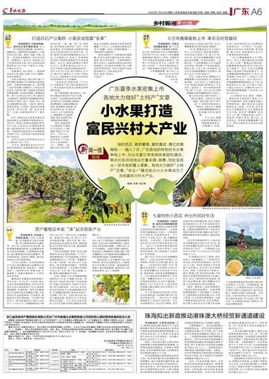 羊城晚报讯 记者吴奕镇摄影报道:眼下正是河源连平鹰嘴桃采摘期,连日来,河源市连平县上坪镇的桃农们忙得不可开交,全县6万多亩鹰嘴蜜桃果园产量达6万多吨,当地果农今年可谓是迎来甜蜜丰硕果实。始种于20世纪80年代末,已获评“岭南十大佳果”“广东省名特优新农产品”“国家地理标志保护产品”等称号的鹰嘴蜜桃,如今成了当地村民实实在在的致富果实。近年来,果农们更是大力发展文旅产业,与小小鹰嘴蜜桃共同讲好致富“甜蜜经”。 “80后”谢增县是土生土长的上坪人,大学毕业后,他在深圳谋得一份家具设计师的工作,收入不菲。2015年,连平县的鹰嘴蜜桃产业发展已初具规模。怀有家乡情怀、一直看好这一产业的谢增县2015年毅然回乡创业,借助桃子产业创业致富。盘活土地、下田干活、培育桃苗,走出办公室卷起裤脚到了田间地头,他成了众人口中的“新农人”。 作为一名返乡创客,谢增县对于鹰嘴蜜桃产业的发展有自己的规划和思路。2016年初,正当桃花盛开之时,他通过网络众筹等形式,与乡亲们一起举办了一场当地传统美食“老八盘”千人宴。当天,近200桌酒席铺排在桃花掩映的村庄空地上,数百名村民和大量外来客人一起共享盛宴。这场名为“客邑桃缘·寻味乡韵”连平“老八盘”千人宴的传统美食大型活动,从此打开了谢增县借助鹰嘴蜜桃转型文农旅融合的发展思路。 不久之后,他就在盘活的桃园区内建起桃园景观台、田野餐厅、民宿,打造了独具特色的文化品牌和休闲旅游活动。3月赏花、7月品桃,游客在这里可以品茶吃桃、赏花度假、夏日玩水,他的桃园已成了不少游客休闲的首选地。 “这几年桃树渐渐进入丰产期,我们一家五口都来桃园和民宿帮忙,收入可观。”谢增县这样说道。因鹰嘴蜜桃受益的还有当地6000多户种植户。如今,在连平县鹰嘴蜜桃产业园项目建设的推动下,全县鹰嘴蜜桃种植面积6万多亩,约有种植户6000多户,产量达6万多吨,产值约6亿元。其中,核心区上坪镇鹰嘴蜜桃种植面积4.2万亩,挂果面积约3.2万亩,总产量3万吨,产值达2.99亿元,全镇约有5000户果农种植鹰嘴蜜桃,户均总收入可达5.98万元。 3月里的连平县,桃花一簇簇、一团团在枝头绽放惹人喜爱;7月时节的桃园里,果农边摘果边喊山的情景犹如一幅丰收的动人画卷展现在众人面前。近年来,连平县结合万亩桃园风光,以打造桃旅项目为主线,利用好“鹰嘴桃”这张名片,以“桃”为媒促发展,实现了把游客、资源引进来,把产品、文化带出去,有效促进鹰嘴蜜桃产业壮大,带动当地经济文化和生态旅游发展。