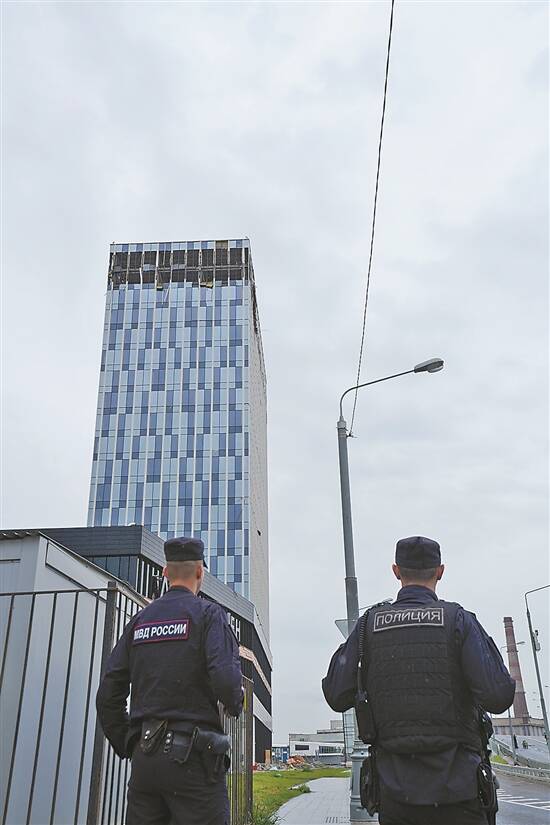 7月24日,在俄罗斯莫斯科,警察在无人机袭击事发区域执勤 新华社发 |