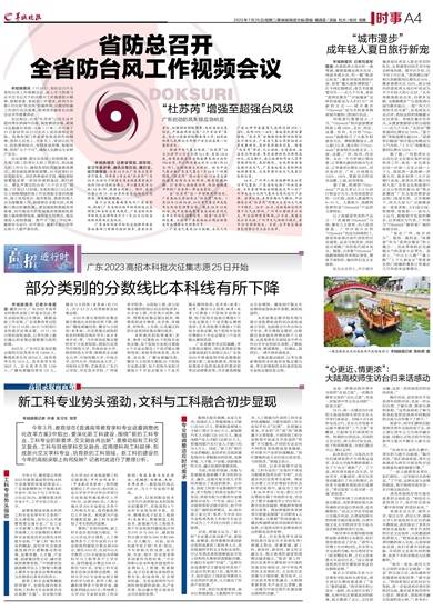 羊城晚报讯 记者孙唯报道:截至24日,广东2023年高考本科批次录取工作基本完成,考生录取结果已可查询。根据录取工作安排,广东省教育考试院定于25日10时-26日10时进行本科批次征集志愿。27日