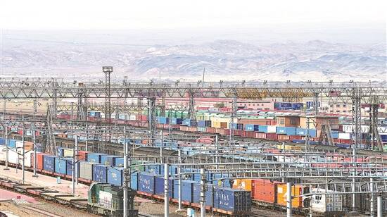 阿拉山口站内停满来往中欧、中亚的货运列车(资料图) |