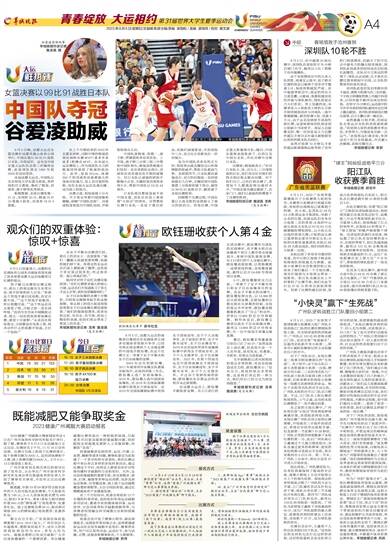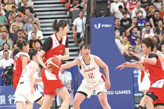 8月5日晚,成都大运会女篮决赛在成都凤凰山体育公园举行,中国女篮以99比91战胜日本队,夺得冠军。这也是中国女篮大运队队史第三次摘得金牌,此前球队曾在1993年和2003年成功登顶。 本届成都大运会,中国队以北京师范大学女篮为班底,李笋南担任主教练,集结了韩旭、刘禹彤、唐子婷等优秀球员。 根据数据,本场比赛张敬一21分,宋珂昕20分,韩旭18分10篮板9助攻,刘禹彤16分4篮板。 在上个月刚结束的2023年女篮亚洲杯,司职中锋的韩旭获得亚洲杯决赛MVP(最有价值球员)和赛会MVP。在本届大运会赛场上,作为国家队主力的韩旭同样展现了极强的统治力。此外,身高201cm、体重200斤的刘禹彤具备着强大的身体对抗能力,加上其可爱的性格,也在本届大运会迅速出圈,成为场上的焦点。 决赛之战,现场氛围十分火热。不少观众举着中国国旗和横幅,高喊“中国队加油”。谷爱凌现身观战为中国队加油,并和现场观众互动。 中国队派韩旭、张敬一、唐子婷、贾赛琪和李双菲首发。上半场,唐子婷三分球三投三中帮助中国队领先,韩旭虽然被重点盯防但一直在串联队友得分,刘禹彤在进攻端也有不错的威慑力。但日本队以顽强的拼抢不断缩小分差,关键时刻刘禹彤连得8分,帮助中国队以53比44领先。 日本队球员整体身高不如中国女篮,其队伍在场上秉承着“小快灵”的球风。尽管整场比赛日本队一直处于落后状态,但她们顽强紧追,并连续投中三分,双方比分差距也在一次次缩小。 每当中国队进攻有些乏力时,现场观众就会爆发出山呼海啸般的助威声,帮助主队提高气势。直到第四节,日本队都在顽强追分,双方的拉锯战一直持续到最后几分钟,关键时刻中国队靠着三分投射和篮下得分,最终以99比91战胜对手,顺利拿下本场比赛胜利。 回顾整个比赛过程,中国女篮以五战全胜的成绩展示了强大的统治力。首场比赛,中国女篮大胜葡萄牙队;随后,中国女篮接连战胜波兰、巴西以及中国台北队,并在决赛中击败日本队。 决赛前,韩旭就表示:“针对日本队小、快、灵为主,三分球很准的打法,我们也会针对她们的特点相应地去解决问题。对于我们自己,已经打到决赛了,希望每个人都能发挥出最好水平。”中国女篮也确实做到了,在家门口,她们以顽强的拼搏拿下了决赛的胜利。 羊城晚报特派记者 詹淑真 龙希(发自成都)