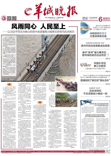 中共广东省委主管、主办 羊城晚报社出版 1957年10月1日创刊 35℃ 26℃ 2023年8月6日 癸卯年六月二十 星期日 责编/孙焰 美