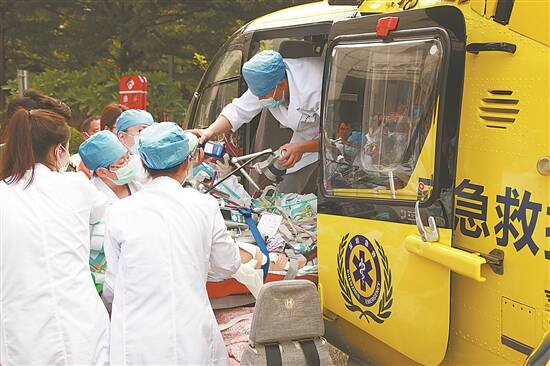 转运直升机抵达中山大学孙逸仙纪念医院南院区,医护人员紧急开展落地救治工作 |