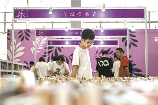 广州市民在“诗乐无边”展区的换书区内浏览书籍 羊城晚报记者 钟振彬 摄 |