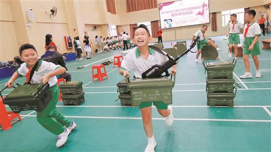 4日,广州市荔湾区合兴苑小学举行校园国防教育观摩体验活动 羊城晚报记者 陈秋明 摄 |