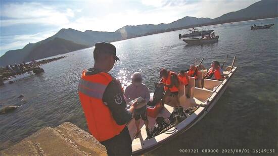 海警执法员将涉事人员带回调查 通讯员供图 |