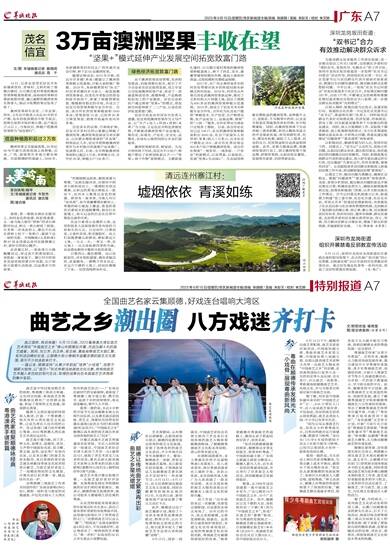 文/图 羊城晚报记者 詹翔闵 通讯员 高 干 14日,记者走进茂名信宜市朱砂镇燕贺村、罗林村、文料村和丁堡镇古楼村、白石镇吉度村等地的澳洲坚果种植基地看到,绿油油的果树沿着斜