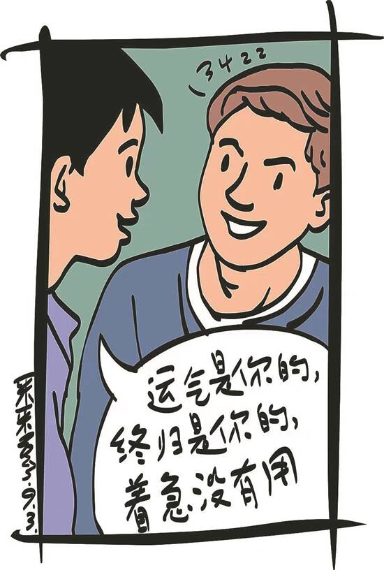 插图:采采 小张聪明伶俐,在公司里挺招人喜欢的。可小张也有一个毛病,就是做什么事都要往后拖。有时领导交办小张一项工作,小张态度很好,可就是不到最后一刻不完成。日子久了,遇到什么急活,领导就不敢轻易交给小张。他们心里也在权衡,就小张那“稳当劲”,万一最后一刻没“交卷”,岂不是把事情搞砸了。 说起“拖延症”,小张自小就有。那还是孩童时代,每年寒暑假老师留的作业,不到临开学,小张都不会去触碰。有的小孩是先做完作业再撒欢玩,小张正好拧过来,他是玩累了再干正事。那时他还问小伙伴胖胖:那么着急写作业干啥,有那么长的假期。放假不就是与平时不同嘛,给自己弄得那么紧张没必要啊。 秉持着这样的理念和人生信条一路走来,小张在每一个人生阶段都过得从容不迫,有点闲庭信步的感觉。别人认为他是散漫,他自己却不这么认为,他觉得自己是具备恰到好处的“临界感”。他觉得有很多事情是急不来的,比如买彩票。小张跟朋友小刘说:“运气是你的,终归是你的,着急没有用。要是真的想中奖,不如在买彩前多研究下出彩规律。”小张是这么说的,也是这么做的,每次买彩前,他都要仔细思量一番,而且还有个习惯,每次都是在彩票停售前几分钟下手。(朱延嵩)