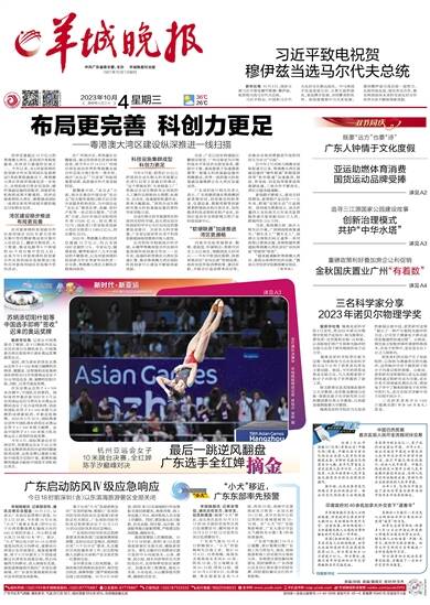 中共广东省委主管、主办 羊城晚报社出版 1957年10月1日创刊 2023年10月4日 癸卯年八月二十 星期三