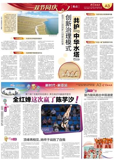 本版采写:羊城晚报特派记者 柴智 詹淑真 本版摄影:羊城晚报特派记者 林桂炎 梁喻 10月3日,杭州亚运会女子10米跳台决赛在杭州奥体中心游泳馆进行,广东选手全红婵与队友陈芋