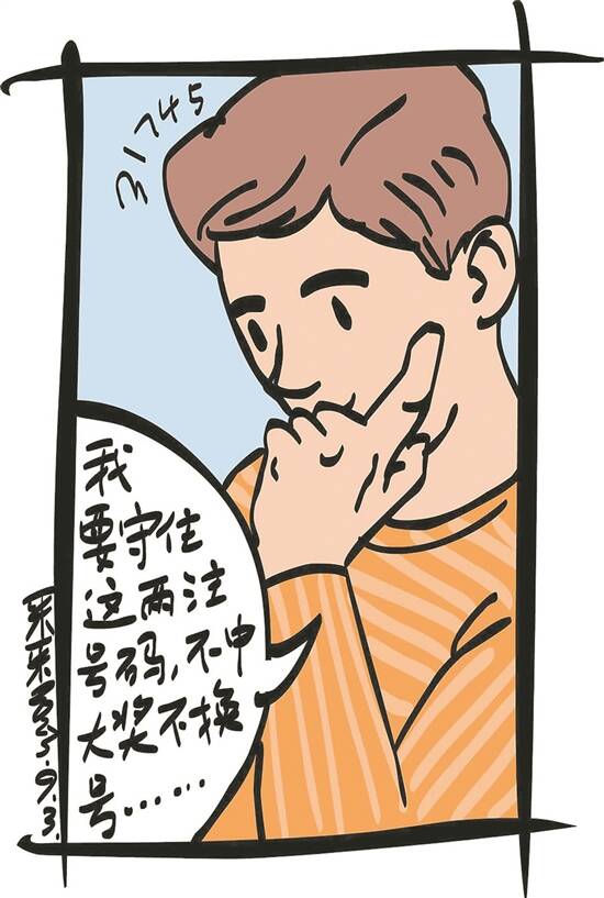 插图:采采 在彩票店开张后,因店位优越,店前流动人员多,加上大杰热情好客,很快就有了一批固定彩民常来他店里买彩票。彩票店生意兴旺了,不少过往游客也被吸引进来,见店里有沙发凳子,就坐下休息片刻。大杰见状,拿纸杯泡上一杯茶水递给休息的客人,大杰的热情使不少游客心生感激,临走也买上几注彩票,以答谢大杰的热情。 大杰以前没买过彩票,开店后大杰只一心销售彩票。一次,店里中出了一注三等奖,大杰心动了,凭开店的便利,自己何不也做个小彩民,买彩票试试手气呢。 有了买彩票的念头,大杰给自己定了规矩,每期彩票就买两注,为了不影响销售工作,大杰认真选了两注号码,决定守这两注号码,不中大奖不换号。 拿定主意后,大杰用自己选的两组号第一次买了一张彩票。不想晚上开奖,大杰买的一注彩票就中了三等奖。 兴奋之中大杰稳住心情,决定以后一边经营好彩票店,一边做个小彩民,在为自己家人生活添彩的同时,也为国家的福利事业作点贡献。(汪小弟)