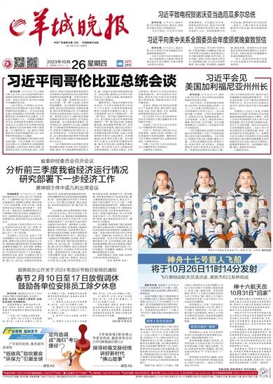 广交世界 互利天下 聚焦第134届中国进出口商品交易会 广交会的底色,毫无疑问是绿色 “低碳风”劲吹展会 “环保力”引潮全球 定向选调成“海归”考公捷径? 详见A3 《羊城晚报》联合佛山市委宣传部,最新发布文化力作《典籍里的佛山》 探寻岭南文脉经络 讲好新时代“佛山故事” 详见A5