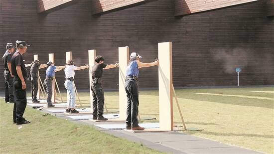 手枪射击PPC600项目比赛现场 羊城晚报记者 郭思琦 摄 |