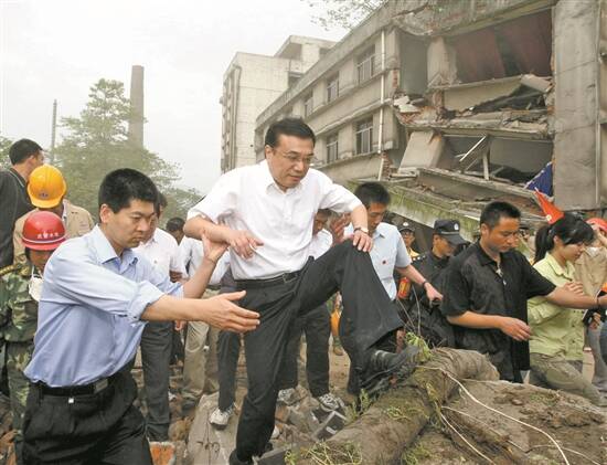 2008年5月19日,李克强同志在四川地震灾区察看灾情。 |