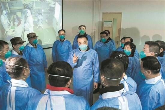 2020年1月27日,李克强同志赴湖北省武汉市考察指导疫情防控工作,代表党中央、国务院慰问疫情防控一线的医务人员。 |