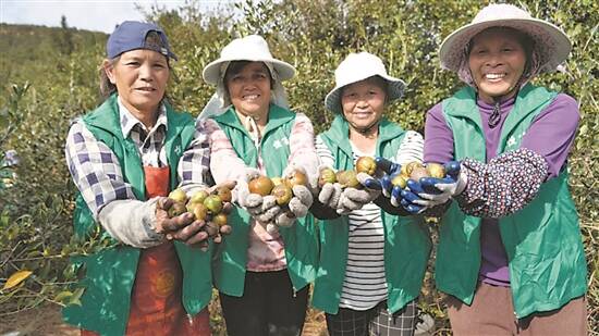 羊城晚报讯 记者欧阳志强、通讯员林绮赟摄影报道:九月稻谷黄,十月油茶香。眼下,韶关市浈江区的油茶果陆续成熟,进入最佳采摘期。连日来,当地农户抢抓晴好天气,采摘油茶果,成为丰收季节里一道靓丽的风景线。 在广东友丰油茶科技有限公司的油茶种植基地(以下简称“友丰种植基地”),10000亩油茶树漫山遍野。红绿相间、圆润饱满的油茶果缀满了枝头,油茶树“笑”弯了腰,果园里传来果农的欢声笑语。今年,油茶果长势喜人,又将是一个丰收年。 迎着秋日暖阳,工人们穿梭在油茶树林中,熟练地将一颗颗已经成熟的油茶果摘下,不一会儿手中便是满满一袋。 “现在每天有300名工人采摘,今年预计采收油茶鲜果3000吨左右,产值超8000万元。”友丰种植基地相关负责人向记者介绍,油茶是中国特有的木本油料植物,从开花到结果,一颗油茶果要历经秋、冬、春、夏、秋五个季节十三个月,营养价值非常高,适时采摘不仅可以提高油茶的出油率,而且可以提高茶油品质,每年的霜降前后油茶果的油脂含量处于最高值,油质也最好的。 据了解,该公司已形成油茶育苗、种植、加工、观赏结合一体化的油茶产业链。“我们不仅把油茶标准化加工厂房升级改造成现代化无尘的、可视化的生产车间,还建立了茶花森林公园、茶花客栈、油茶故事馆等,既可以满足生产加工,又可以供游客参观,实现农业、工业和旅游业等融合发展。”友丰种植基地相关负责人说道。 当地特色品牌的快速发展,现已成为助力乡村振兴、增加农民收入的重要产业来源。该基地每年春季的开荒种植、夏季的基地管护、秋季的油茶果采摘,都吸纳了大量的当地农民就业,让农民在家门口就有了收入,有力推动了当地乡村振兴。 浈江区农业农村局相关负责人告诉记者,近年来,浈江区通过良种良艺良法建设高标准油茶基地,助推油茶丰产丰收,推进一二三产业融合发展,提高油茶附加值,将小小油茶果转变成致富大产业。未来,浈江区将根据油茶产业高质量发展情况,持续优化完善特色油茶产业发展方案,激发农户和企业积极发展油茶产业的热情,为进一步推进油茶产业发展和乡村振兴作出贡献。