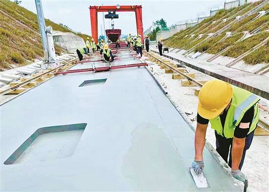 首件试验段底座板浇筑 通讯员供图 |